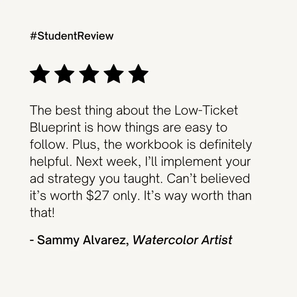 After perfecting strategies that consistently deliver results, I’m sharing all my insights in the Low-Ticket Blueprint.